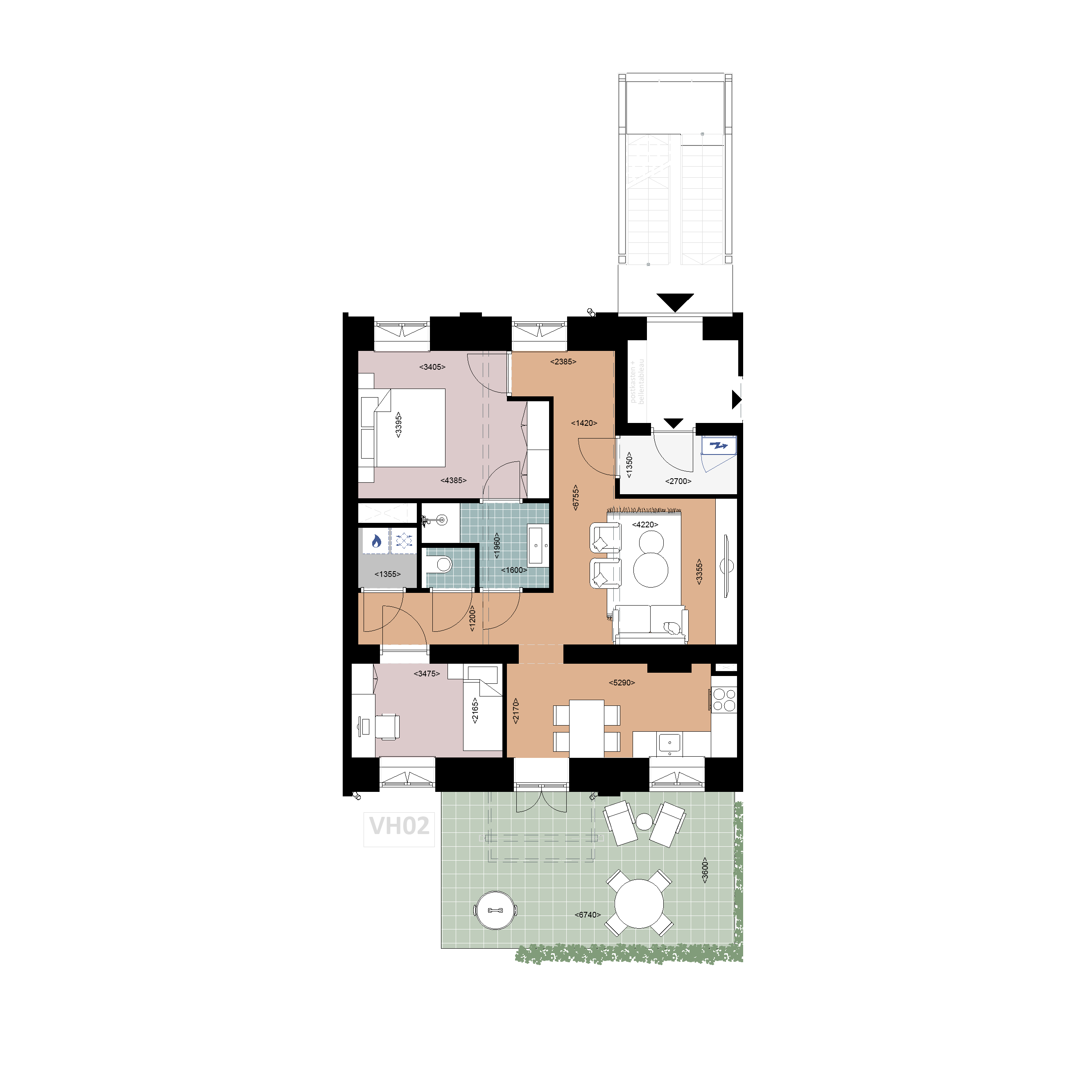 VH02 ligt direct aan de sfeervolle kloostertuin en ademt rust, harmonie en geborgenheid. Dit appartement is ideaal voor wie houdt van comfortabel wonen met een vleugje historie. Hier is het elke dag heerlijk thuiskomen.
