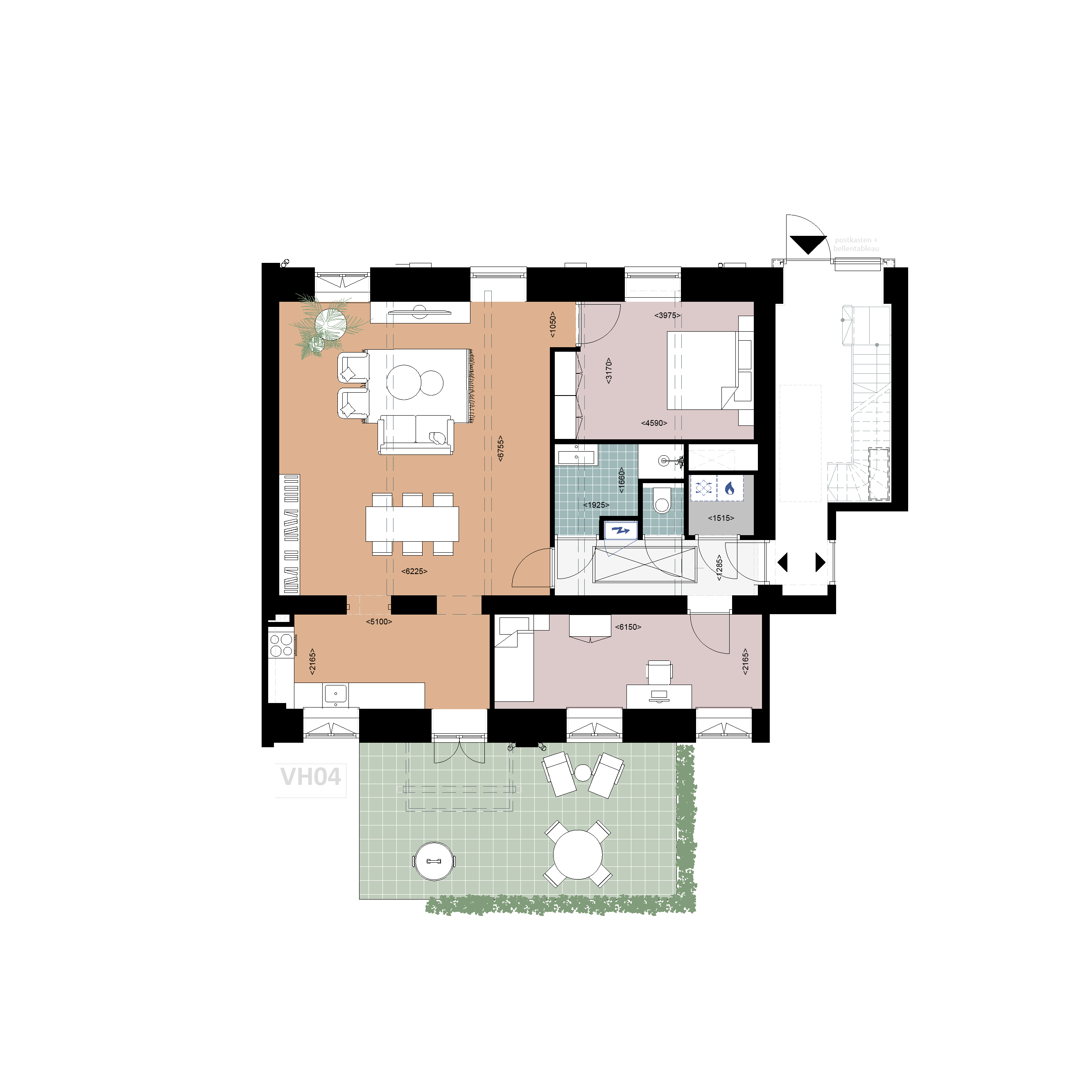 Midden in het klooster ligt VH04 – een woning die rust en comfort uitstraalt vanaf het eerste moment dat je binnenstapt. De hoge ramen laten veel daglicht binnen, terwijl de warme uitstraling van het monument zorgt voor een huiselijke sfeer waarin je direct op je gemak bent.