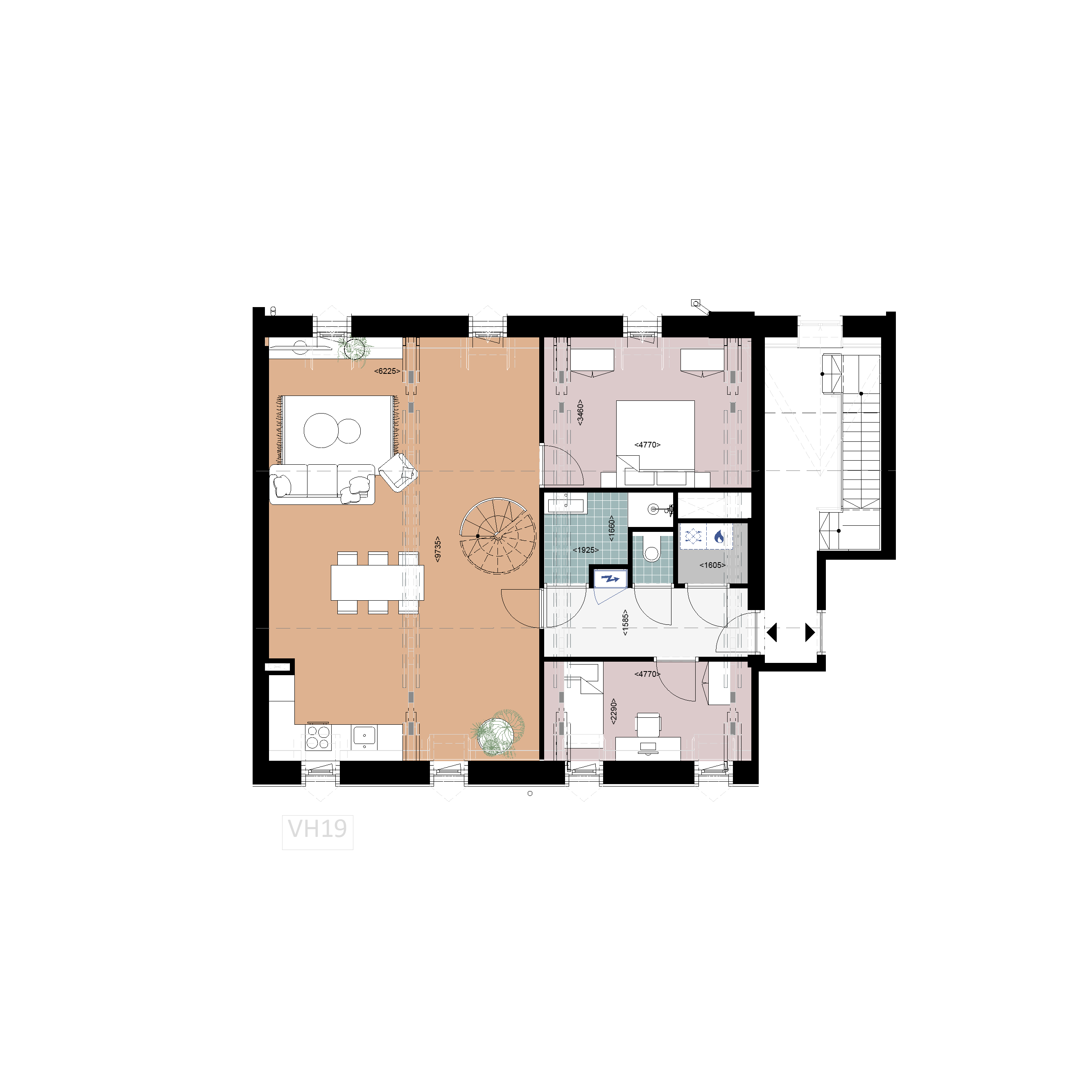 VH19 bevindt zich hoog in het klooster en biedt een prachtig uitzicht over de kloostertuin en het park. De sfeervolle kapconstructie met monumentale dakkapellen geeft het appartement een authentiek en huiselijk karakter.