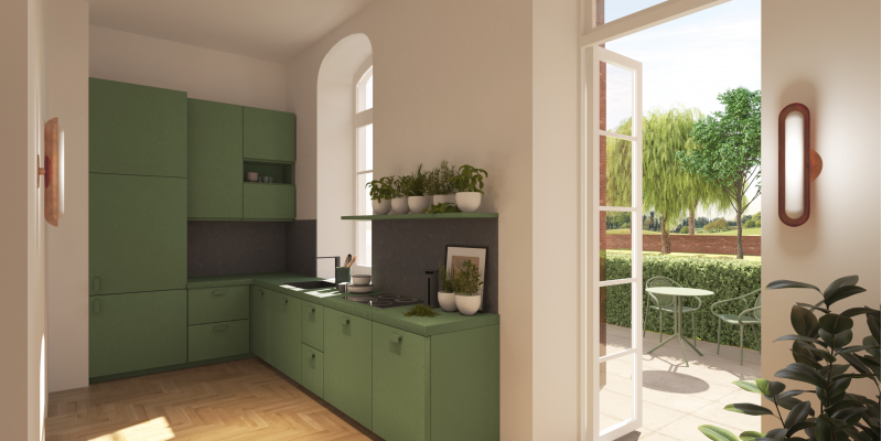 Maak een praatje met je buurtgenoten in de nieuwe, groene kloostertuin die door de VvE wordt aangelegd. Om de relatie met de buurt te versterken wordt de kloostertuin die aan het gemeentelijke park grenst, semi-openbaar gemaakt. De woningen op de begane grond krijgen ieder een stuk kloostertuin als privé tuin.